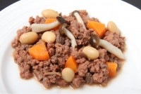 エゾシカモモ肉、人参、大豆、しめじ、トマト(※原材料はすべて国産)